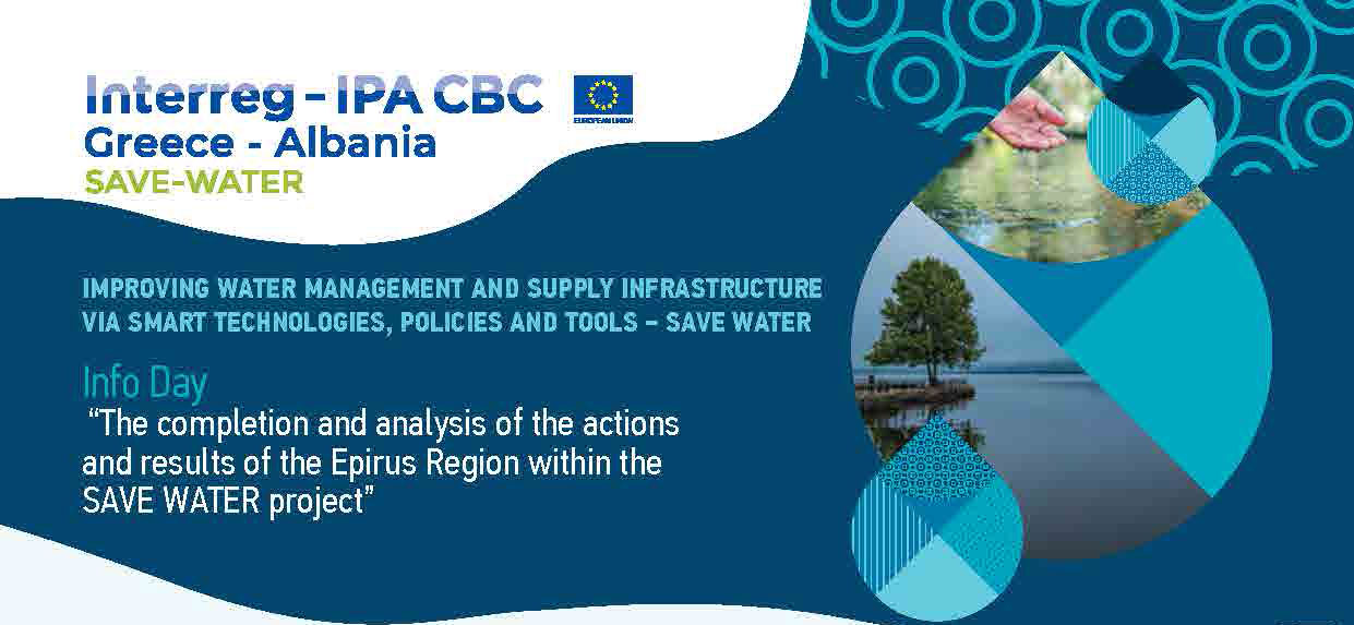 Info day of the SAVE WATER Project “The completion and analysis of the actions and results of the Epirus Region within the SAVE WATER project” Read more: Info Day: The completion and analysis of the actions and results of the Epirus Region within the...